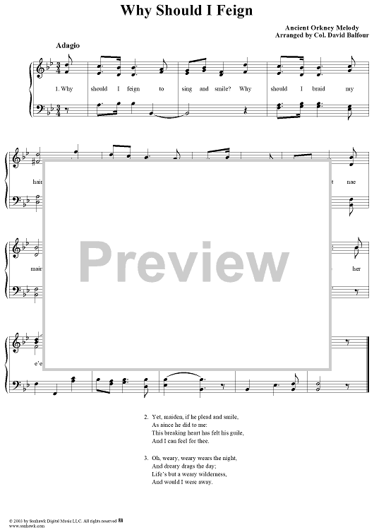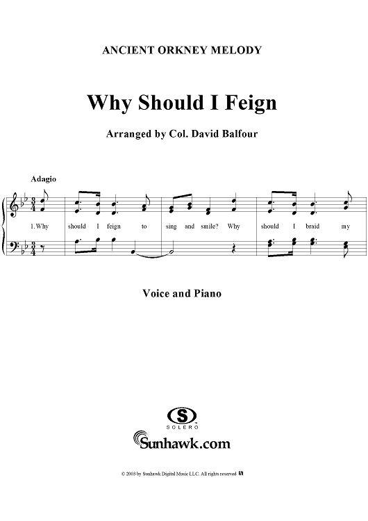 Digital Sheet Music for Why Should I Feign by Col. David Balfour scored for Voice/Piano; id:276178