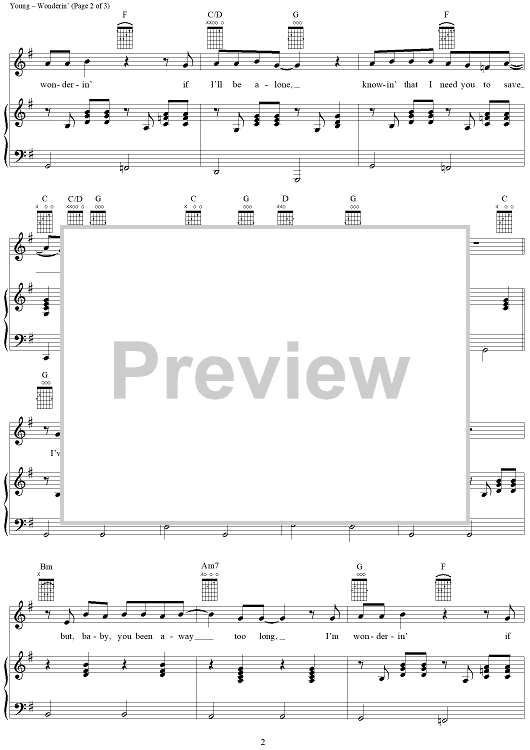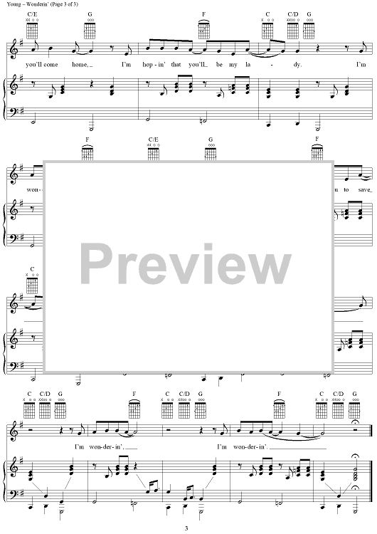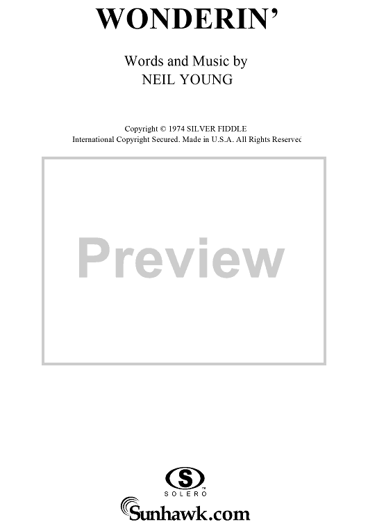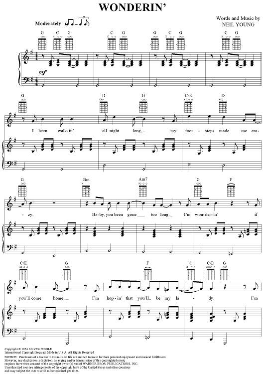 Digital Sheet Music for Wonderin' by Neil Young scored for Piano/Vocal/Chords; id:262818