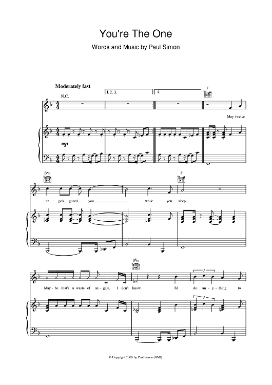 Digital Sheet Music for You're The One by Paul Simon scored for Piano/Vocal/Chords; id:380031