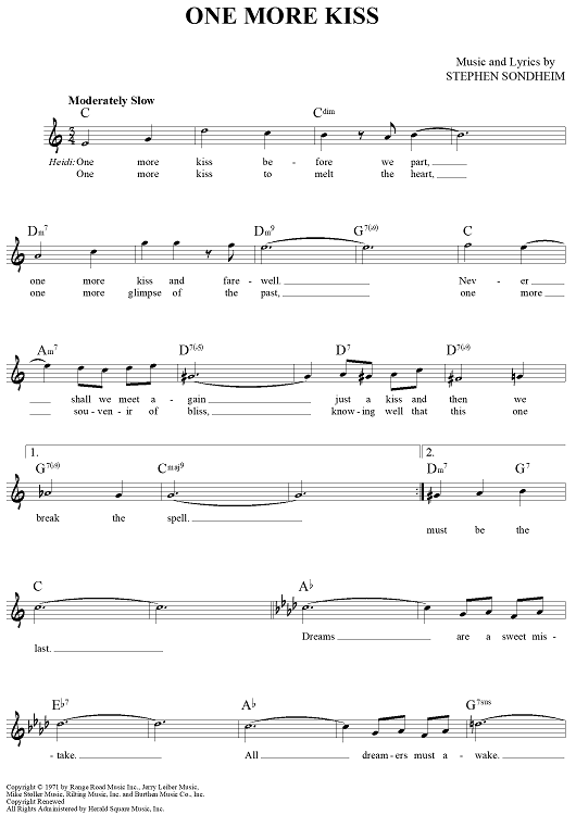 Digital Sheet Music for One More Kiss by Stephen Sondheim scored for Lead Sheet; id:444346