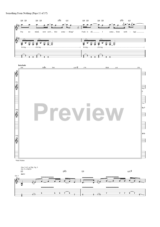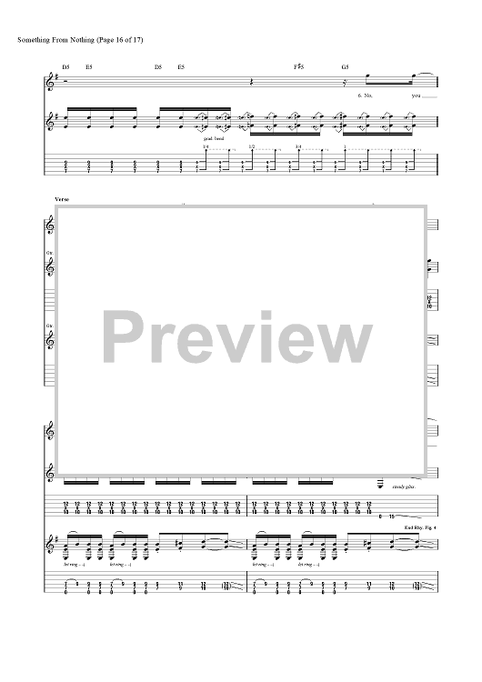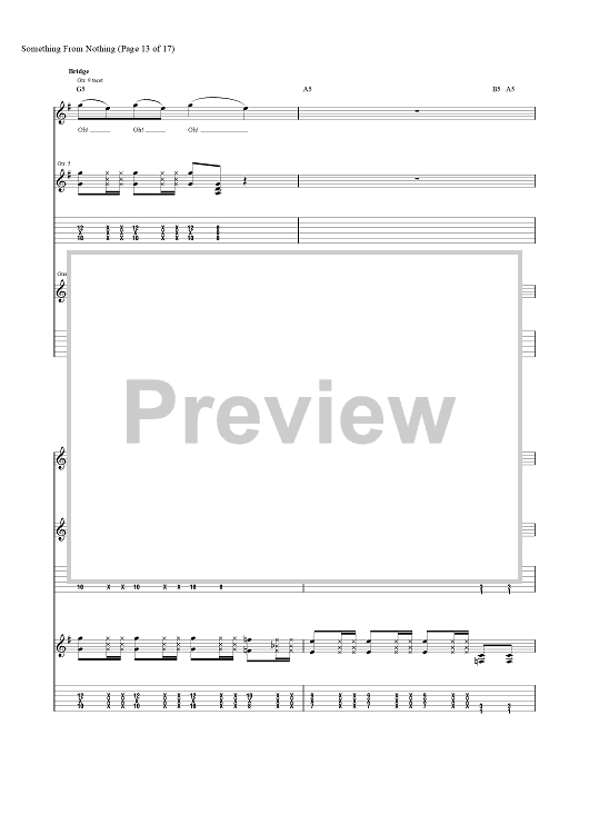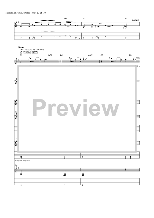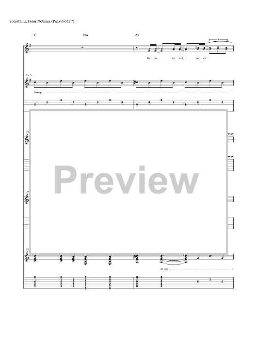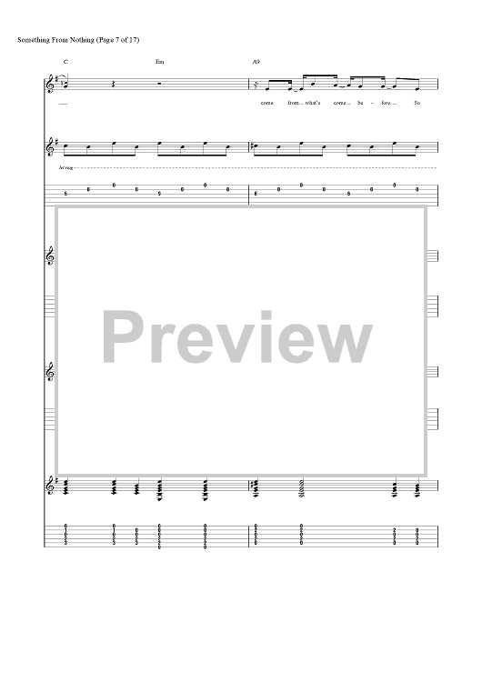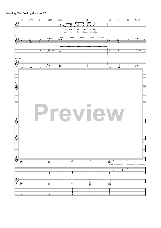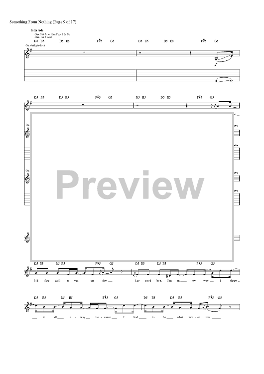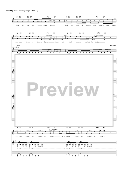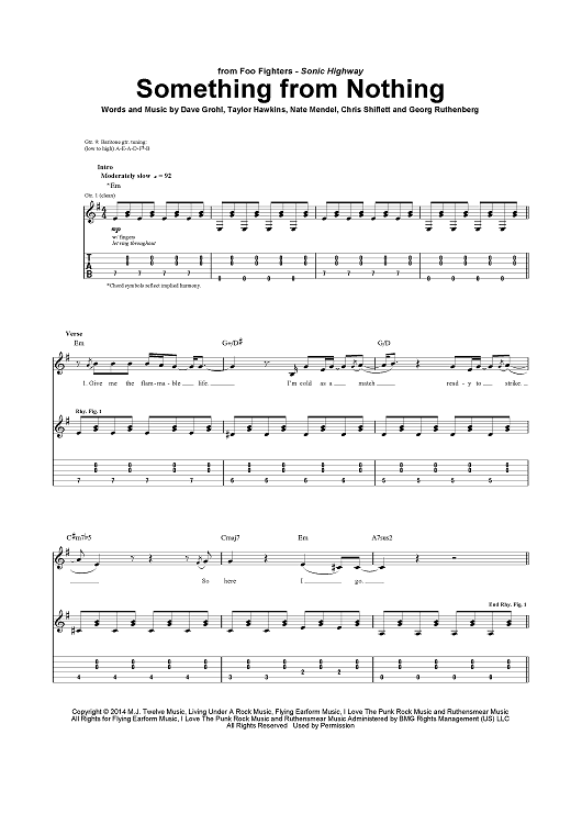 Digital Sheet Music for Something from Nothing by Foo Fighters, Dave Grohl, Taylor Hawkins, Nate Mendel, Chris Shiflett, Pat Smear scored for Guitar Tab/Vocal; id:456694