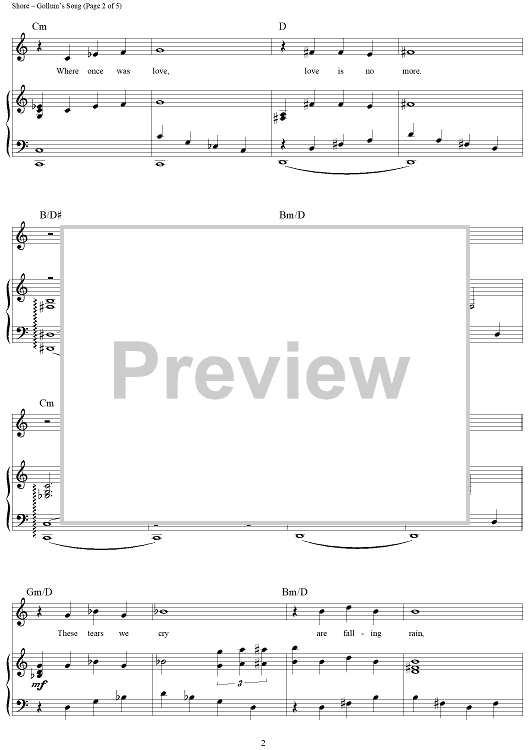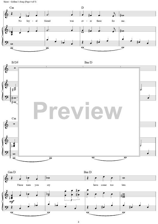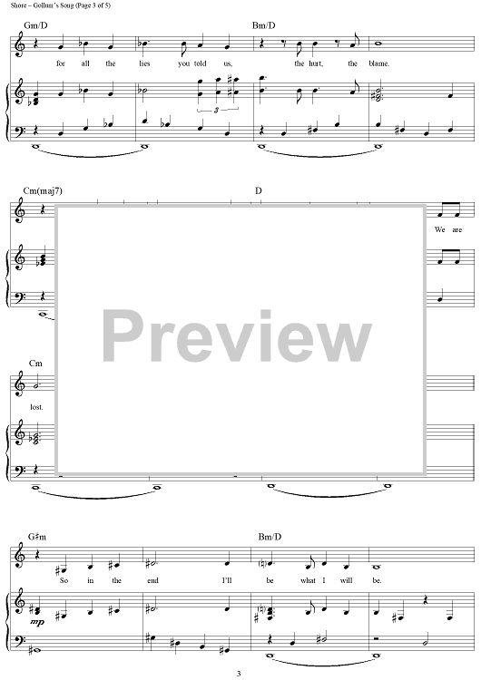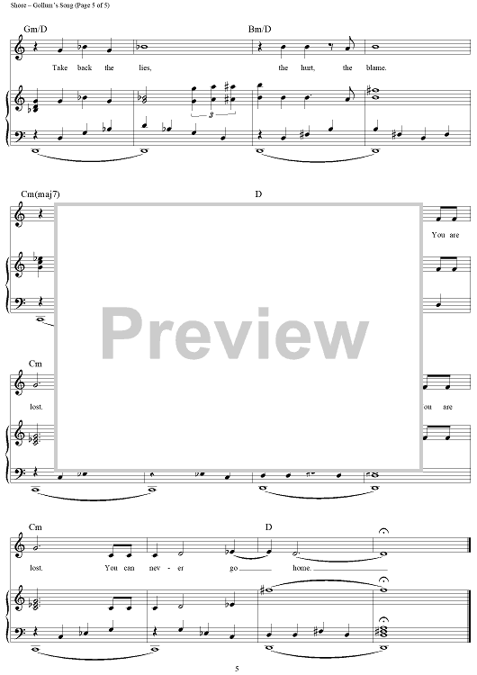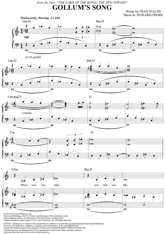 Digital Sheet Music for Gollum's Song by Howard Shore, Fran Walsh, Emiliana Torrini scored for Piano/Vocal/Chords; id:293572