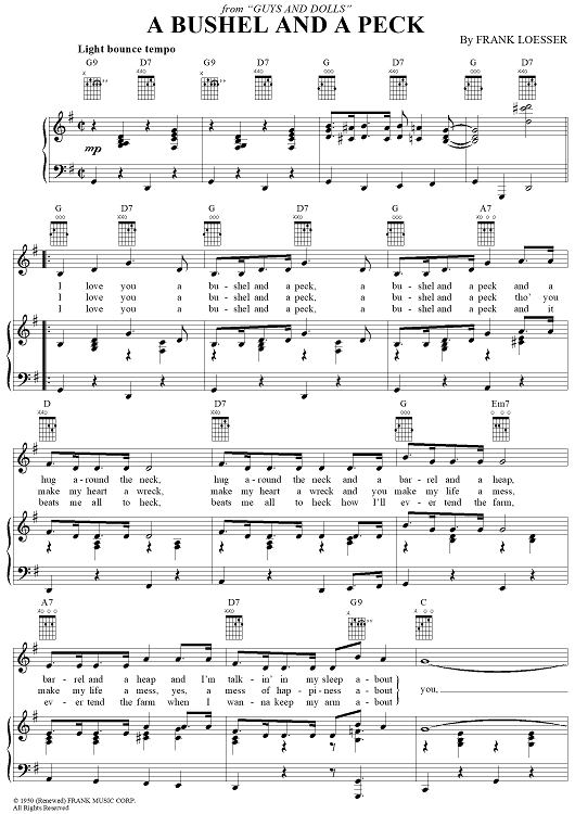 Digital Sheet Music for A Bushel and a Peck by Frank Loesser scored for Piano/Vocal/Chords; id:366966