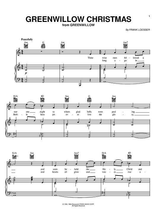 Digital Sheet Music for Greenwillow Christmas by Frank Loesser scored for Piano/Vocal/Chords; id:385754