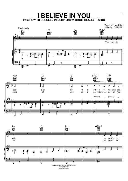 Digital Sheet Music for I Believe In You by Frank Loesser scored for Piano/Vocal/Chords; id:392921