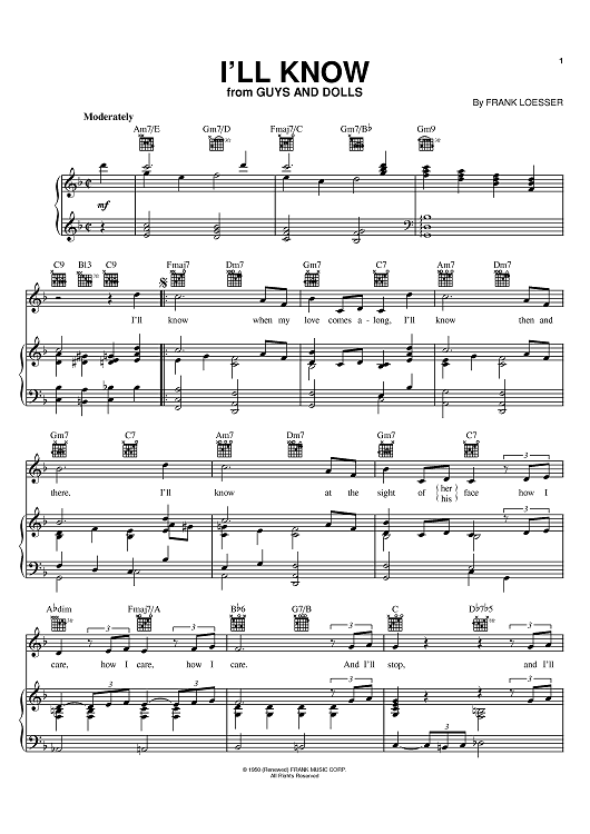 Digital Sheet Music for I'll Know by Barbra Streisand, Frank Loesser scored for Piano/Vocal/Chords; id:386705