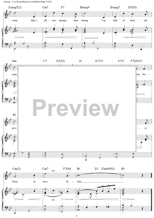 Digital Sheet Music for I've Never Been in Love Before by Frank Loesser scored for Piano/Vocal/Chords; id:366967