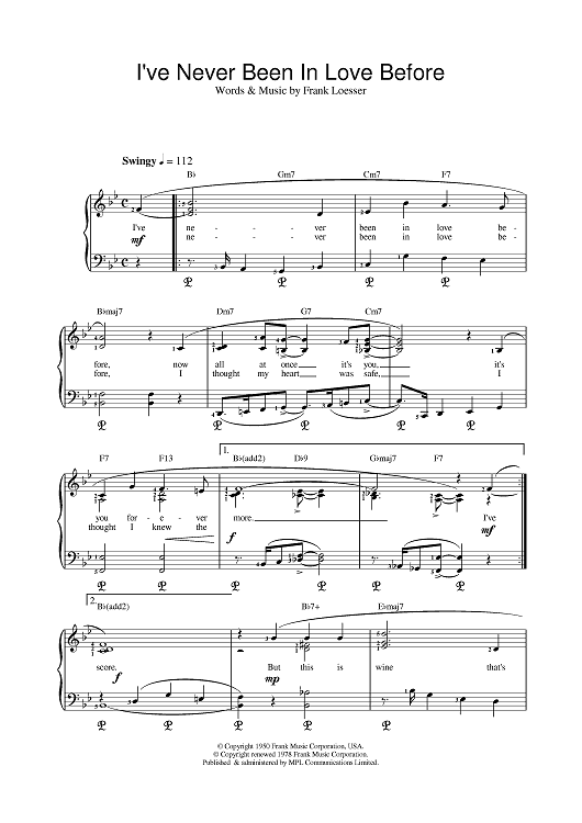 "Ive Never Been In Love Before" Sheet Music by Frank Loesser