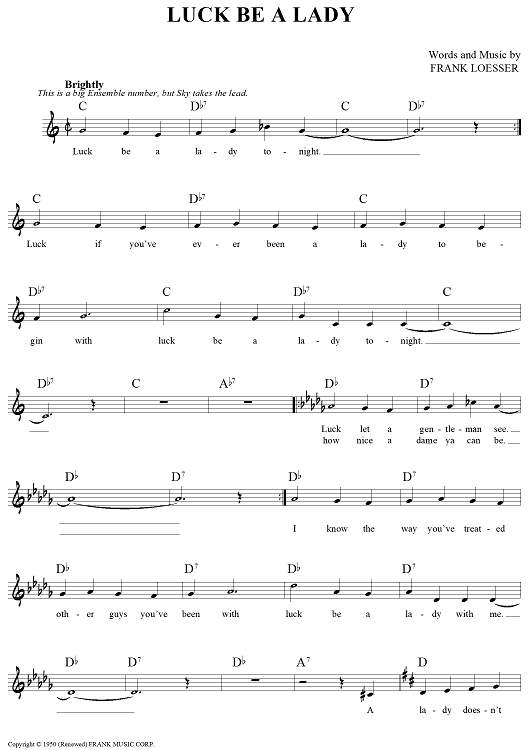 "Luck Be a Lady" Sheet Music by Frank Loesser