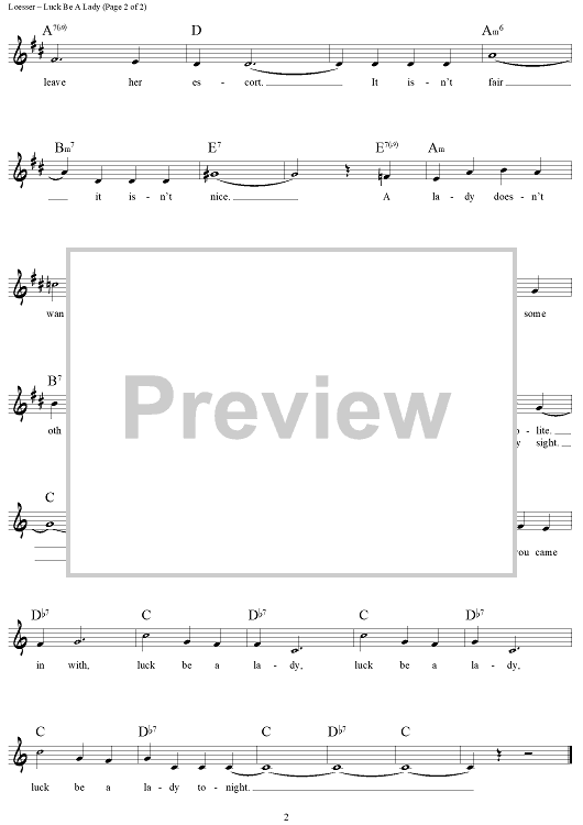 Digital Sheet Music for Luck Be a Lady by Frank Loesser scored for Lead Sheet; id:444424