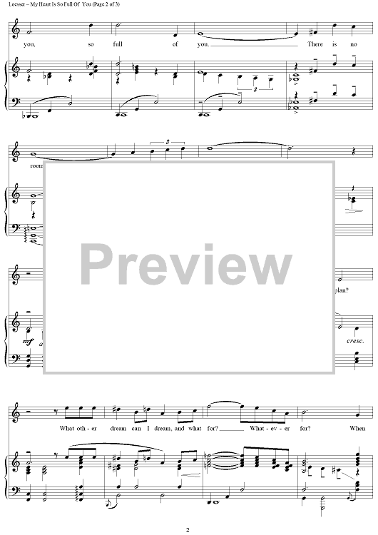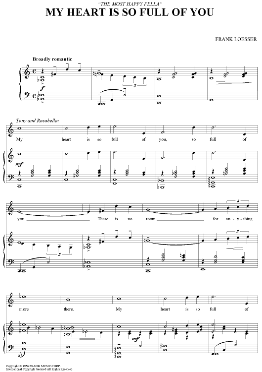 "My Heart Is So Full Of You" Sheet Music by Frank Loesser