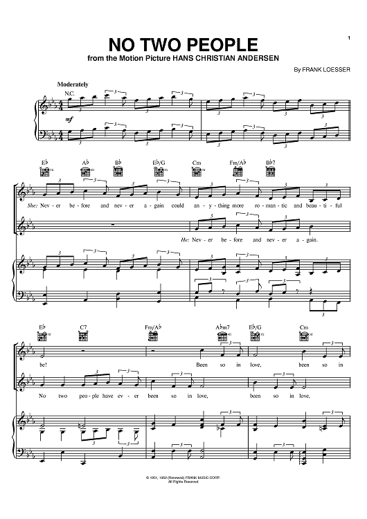 Digital Sheet Music for No Two People by Doris Day, Danny Kaye, Frank Loesser scored for Piano/Vocal/Chords; id:386688