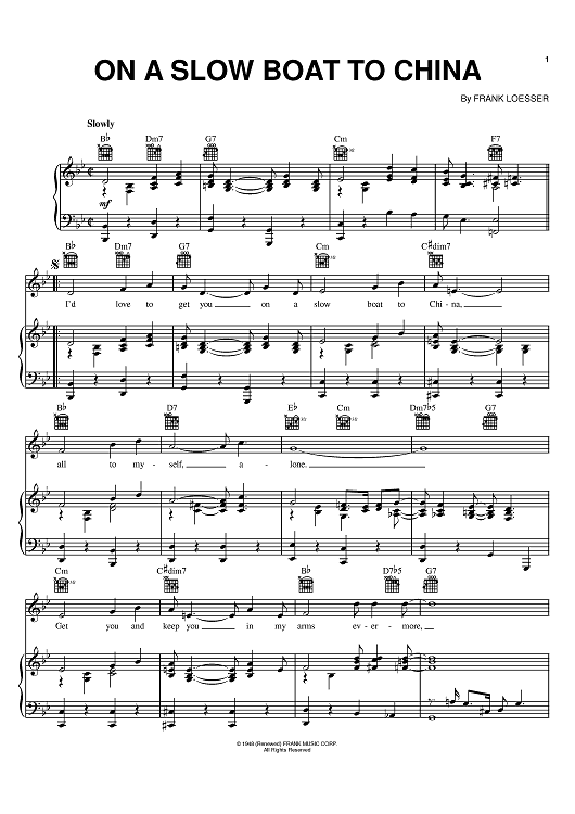 Digital Sheet Music for On A Slow Boat To China by Frank Loesser scored for Piano/Vocal/Chords; id:394780