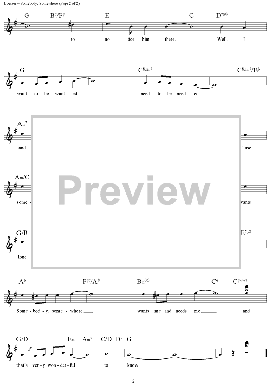 Digital Sheet Music for Somebody, Somewhere by Frank Loesser scored for Lead Sheet; id:447264