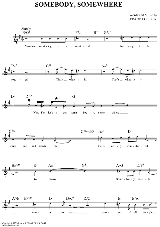 "Somebody, Somewhere" Sheet Music by Frank Loesser