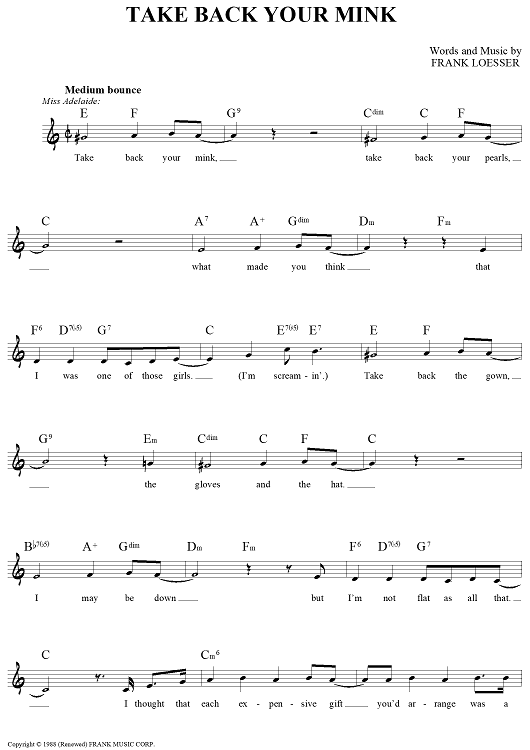 "Take Back Your Mink" Sheet Music by Frank Loesser