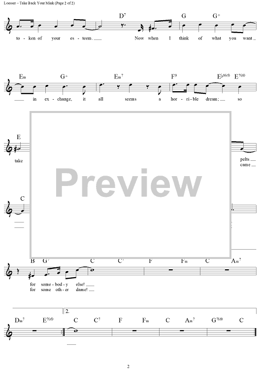 Digital Sheet Music for Take Back Your Mink by Frank Loesser scored for Lead Sheet; id:445138