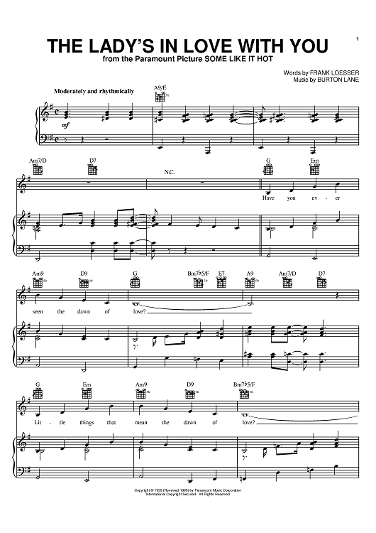 Digital Sheet Music for The Lady's In Love With You by Sarah Vaughan, Burton Lane, Glenn Miller, Bob Hope, Benny Goodman, Frank Loesser scored for Piano/Vocal/Chords; id:386023
