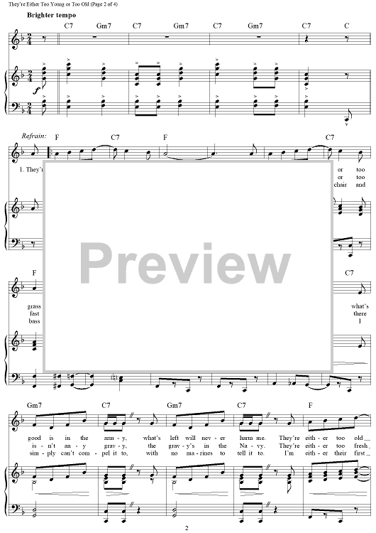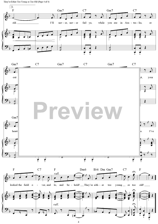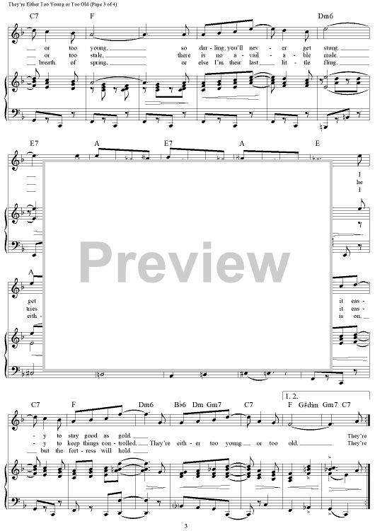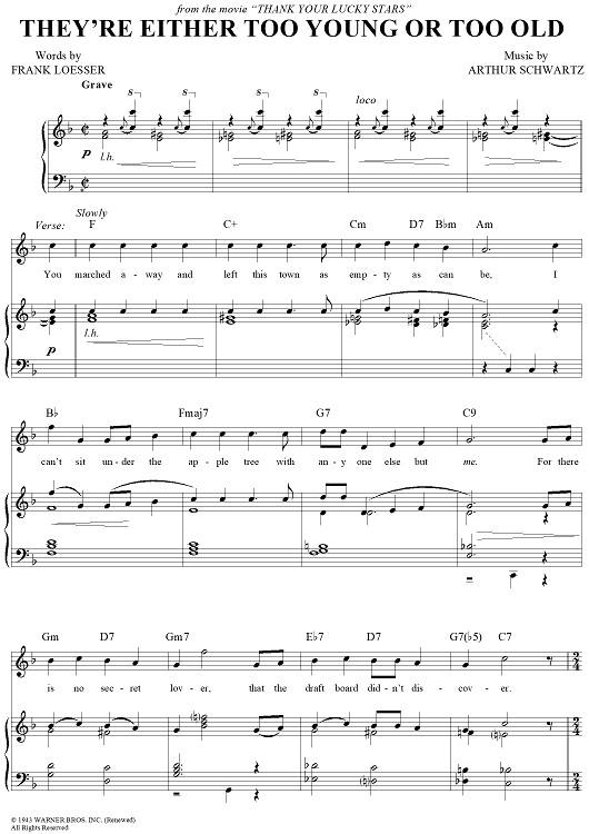 Digital Sheet Music for They're Either Too Young or Too Old by Arthur Schwartz, Frank Loesser scored for Piano/Vocal/Chords; id:257513
