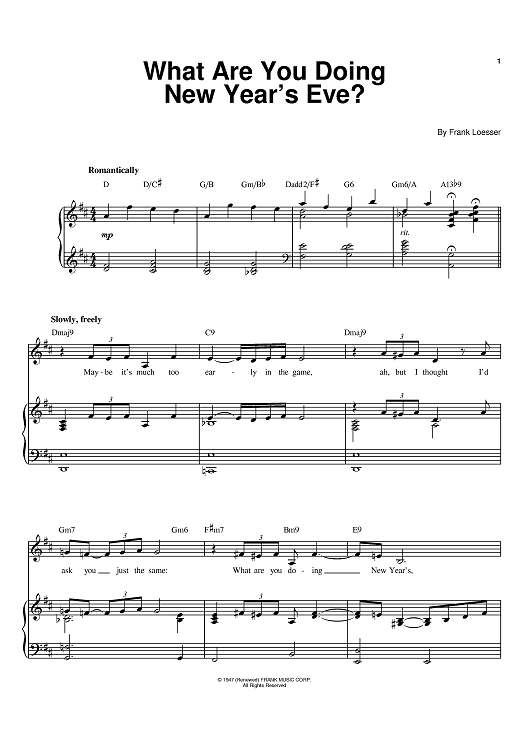 Digital Sheet Music for What Are You Doing New Year's Eve? by Barbra Streisand, Frank Loesser scored for Piano/Vocal/Chords; id:385719