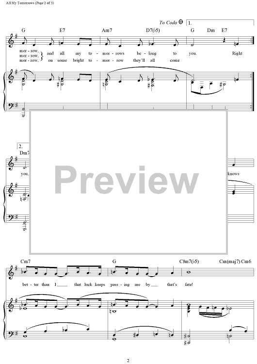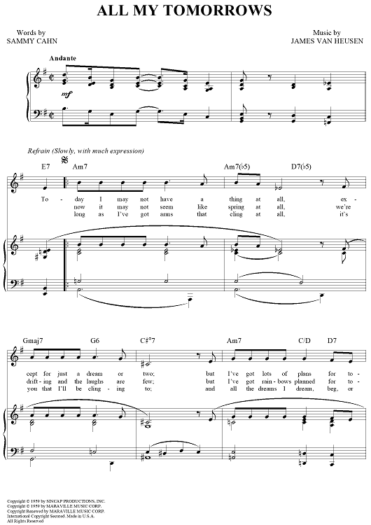 Digital Sheet Music for All My Tomorrows by Frank Sinatra, Sammy Cahn, Jimmy Van Heusen scored for Piano/Vocal/Chords; id:120848