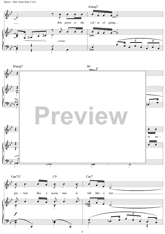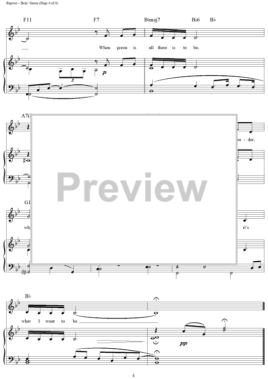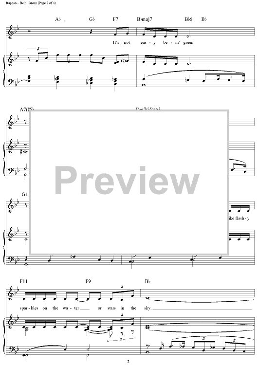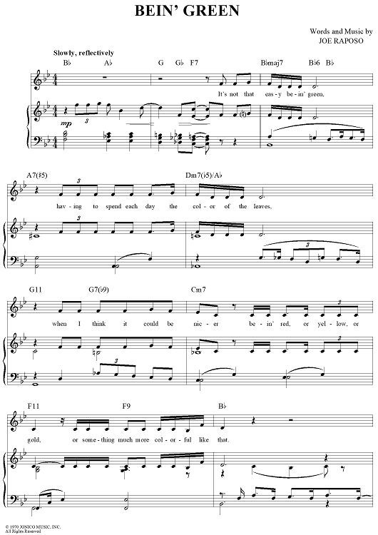 Digital Sheet Music for Bein' Green by Frank Sinatra, Joe Raposo, Kermit The Frog scored for Piano/Vocal/Chords; id:110713