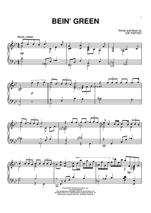 Digital Sheet Music for Bein' Green by Frank Sinatra, Joe Raposo, Kermit The Frog scored for Piano; id:394808
