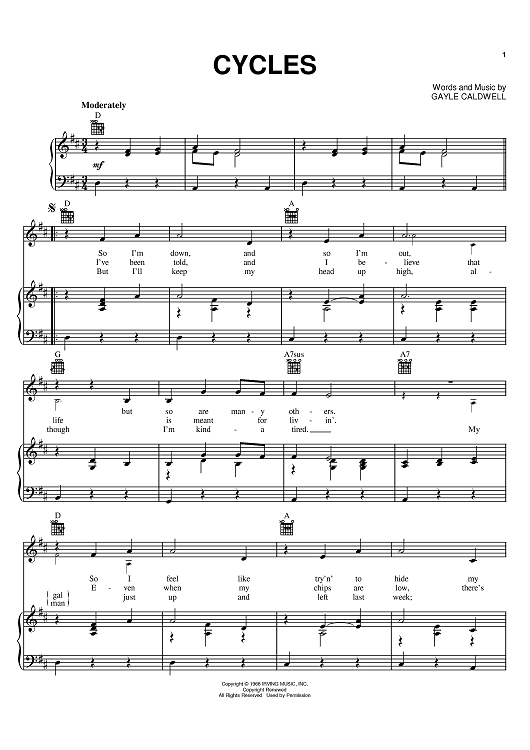 Digital Sheet Music for Cycles by Frank Sinatra, Gayle Caldwell scored for Piano/Vocal/Chords; id:383768