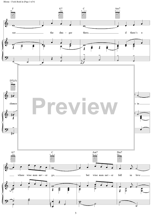 Digital Sheet Music for Fools Rush In by Frank Sinatra, Johnny Mercer, Rube Bloom scored for Piano/Vocal/Chords; id:120643