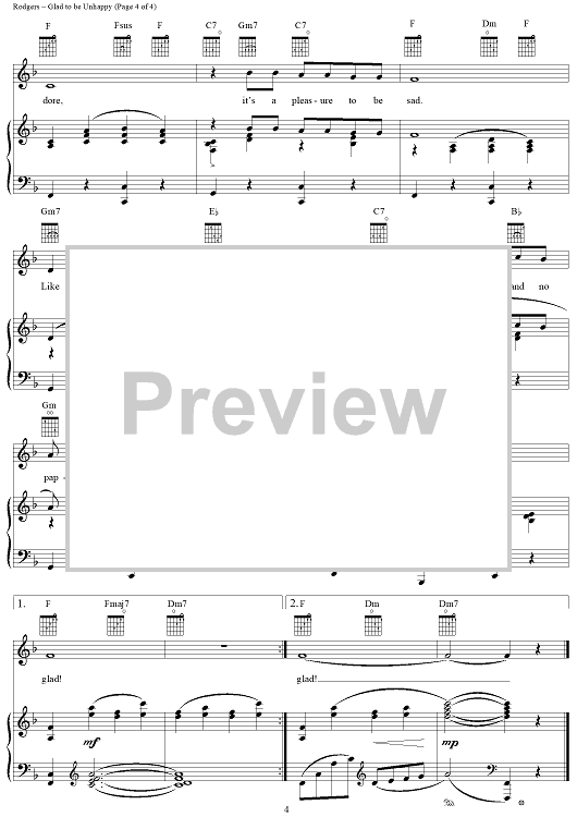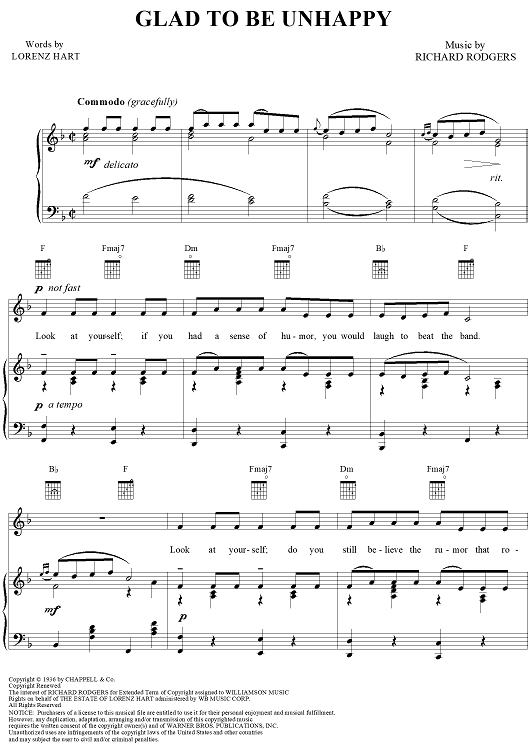 Digital Sheet Music for Glad to Be Unhappy by Frank Sinatra, The Mamas and The Papas, Richard Rodgers, Lorenz Hart scored for Piano/Vocal/Chords; id:111936
