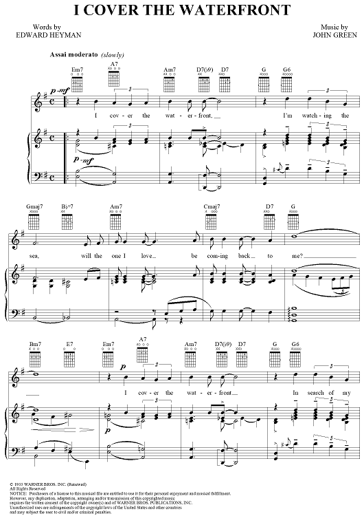 Digital Sheet Music for I Cover the Waterfront by Frank Sinatra, Edward Heyman, Johnny Green scored for Piano/Vocal/Chords; id:112813