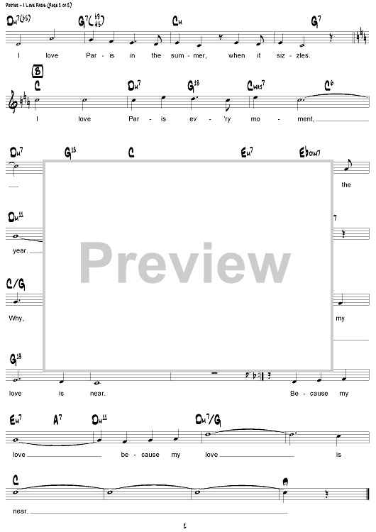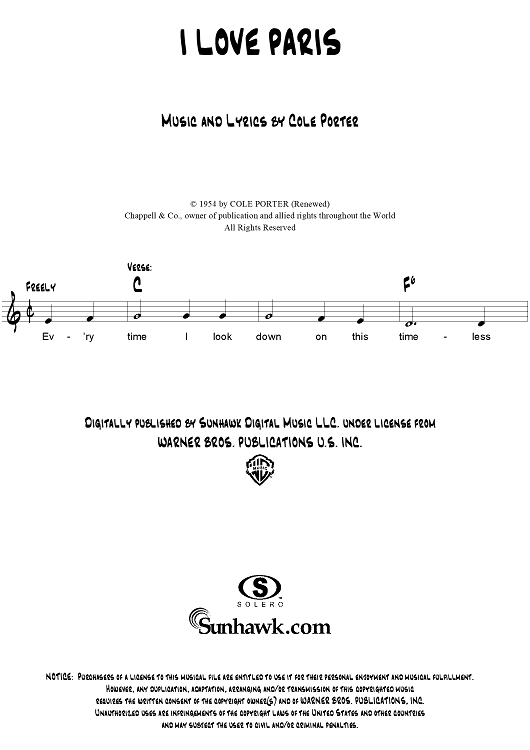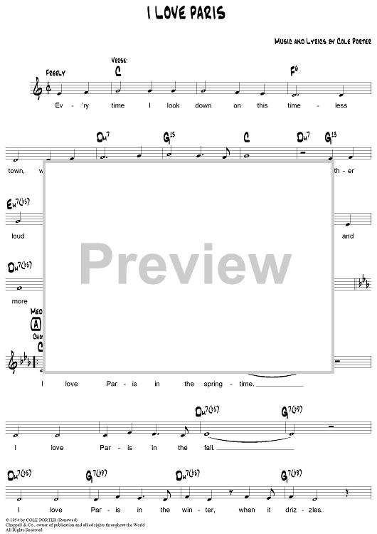 Digital Sheet Music for I Love Paris by Frank Sinatra, Cole Porter scored for Lead Sheet; id:307490