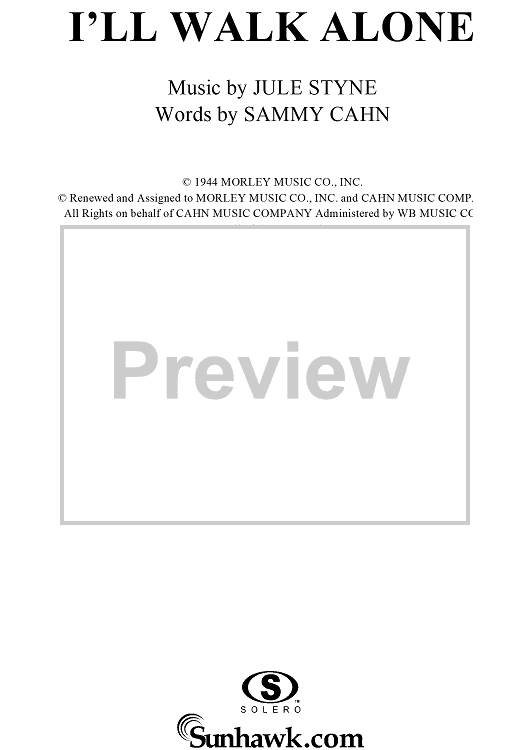 Digital Sheet Music for I'll Walk Alone by Frank Sinatra, Jule Styne, Sammy Cahn, Dinah Shore, Martha Tilton scored for Piano/Vocal/Chords; id:131719