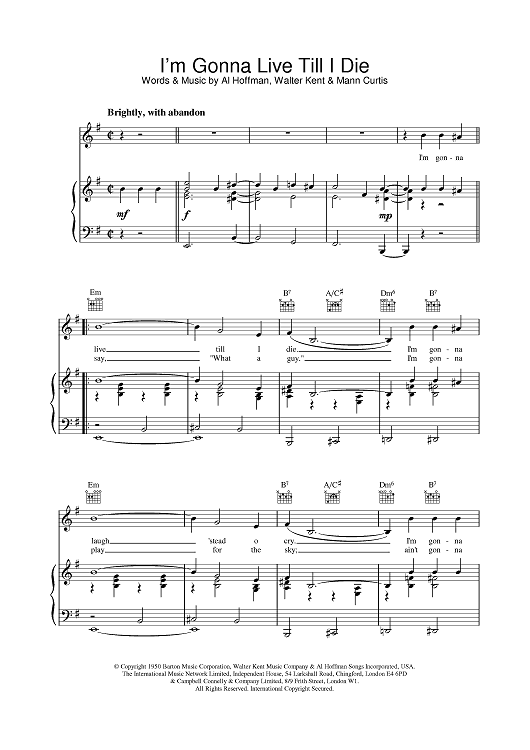 Digital Sheet Music for I'm Gonna Live Till I Die by Frank Sinatra scored for Piano/Vocal/Chords; id:378973