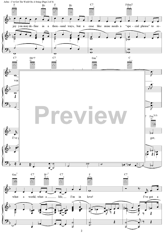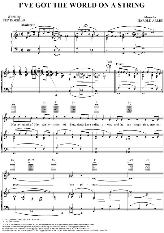 Digital Sheet Music for I've Got the World On A String by Harold Arlen, Frank Sinatra, Bing Crosby, Ted Koehler, Cab Calloway, Michael Buble, Dick Hyman scored for Piano/Vocal/Chords; id:95868