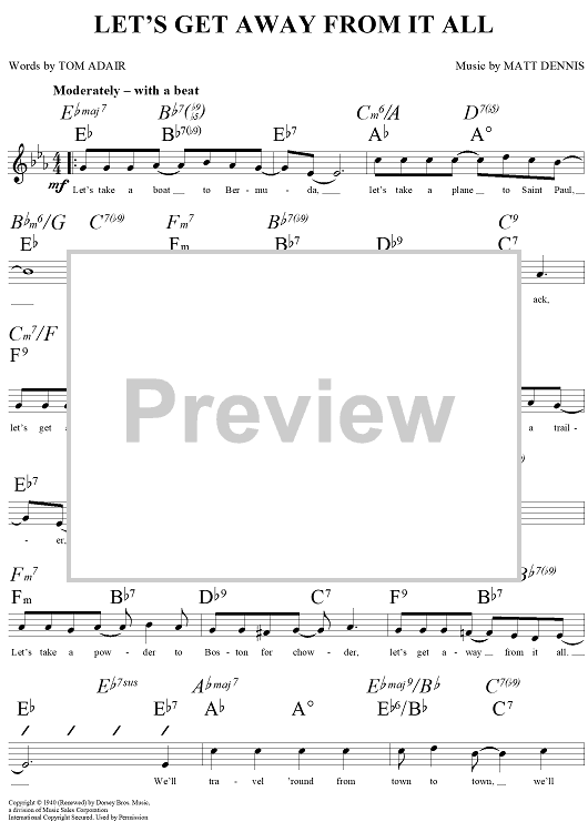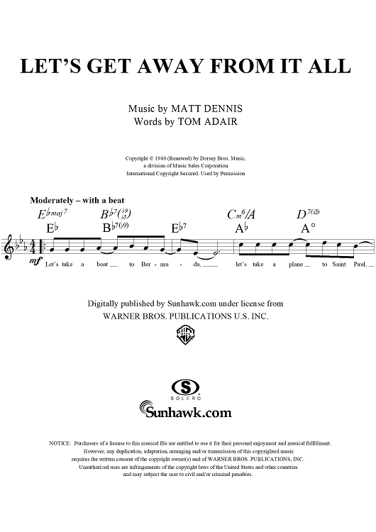Digital Sheet Music for Let's Get Away From It All by Frank Sinatra, Matt Dennis, Tom Adair scored for Lead Sheet; id:271568