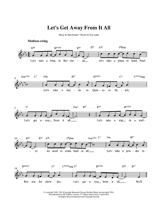 Digital Sheet Music for Lets Get Away From It All by Frank Sinatra, Tommy Dorsey, Matt Dennis, Dave Brubeck, Tom Adair scored for Lead Sheet; id:380656