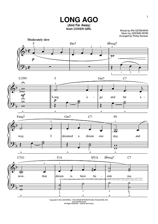 Digital Sheet Music for Long Ago (And Far Away) by Frank Sinatra, Ira Gershwin, Jerome Kern, Phillip Keveren scored for Easy Piano; id:392252