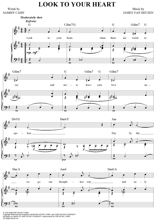 Digital Sheet Music for Look to Your Heart by Frank Sinatra, Sammy Cahn, Jimmy Van Heusen scored for Piano/Vocal/Chords; id:111831