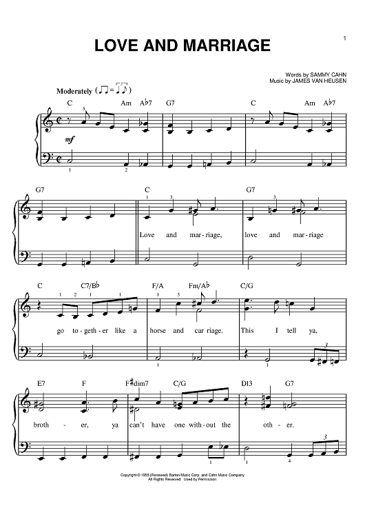 Digital Sheet Music for Love And Marriage by Frank Sinatra, Sammy Cahn, Jimmy Van Heusen scored for Easy Piano; id:388433