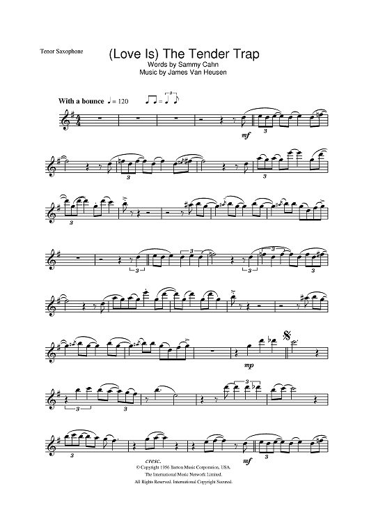 Digital Sheet Music for (Love Is) The Tender Trap by Frank Sinatra, Sammy Cahn, Jimmy Van Heusen scored for Lead Sheet; id:387041