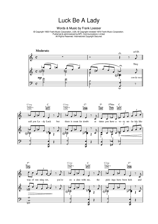 Digital Sheet Music for Luck Be A Lady by Frank Sinatra scored for Piano/Vocal/Chords; id:375549
