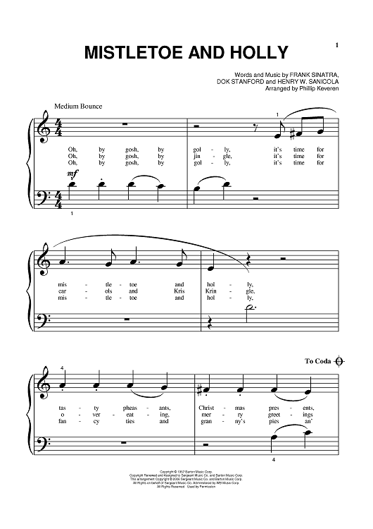 Digital Sheet Music for Mistletoe And Holly by Frank Sinatra, Dok Stanford, Phillip Keveren, Henry W. Sanicola scored for Piano; id:391465