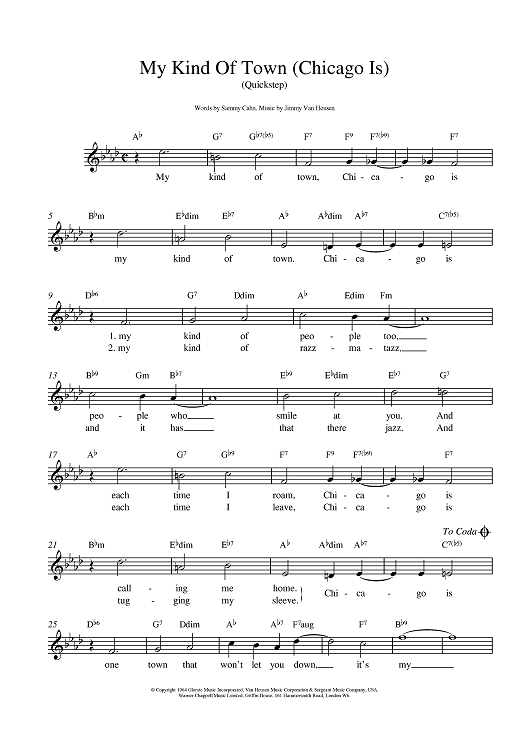 Digital Sheet Music for My Kind Of Town by Frank Sinatra, Sammy Cahn, Jimmy Van Heusen scored for Lead Sheet; id:380779