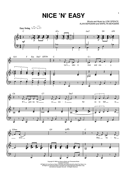 Digital Sheet Music for Nice 'n' Easy by Frank Sinatra, Alan Bergman, Marilyn Bergman, Lew Spence scored for Piano/Vocal/Chords; id:390421