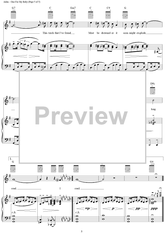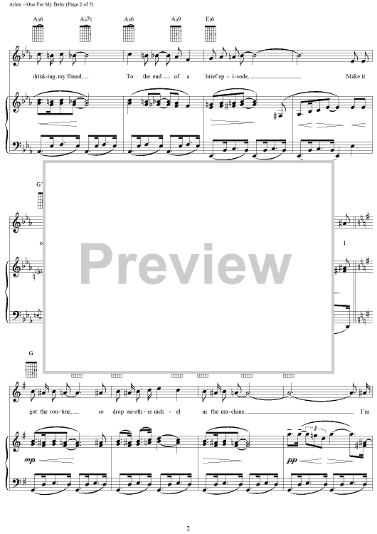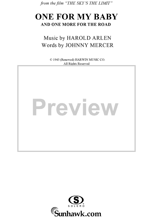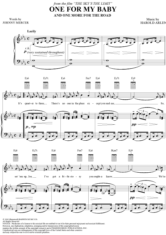 Digital Sheet Music for One For My Baby (And One More For the Road) by Harold Arlen, Frank Sinatra, Johnny Mercer, Fred Astaire scored for Piano/Vocal/Chords; id:112829