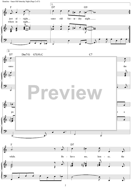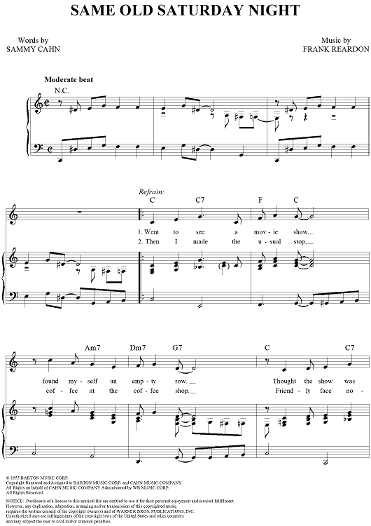 Digital Sheet Music for Same Old Saturday Night by Frank Sinatra, Sammy Cahn, Frank Reardon scored for Piano/Vocal/Chords; id:112832