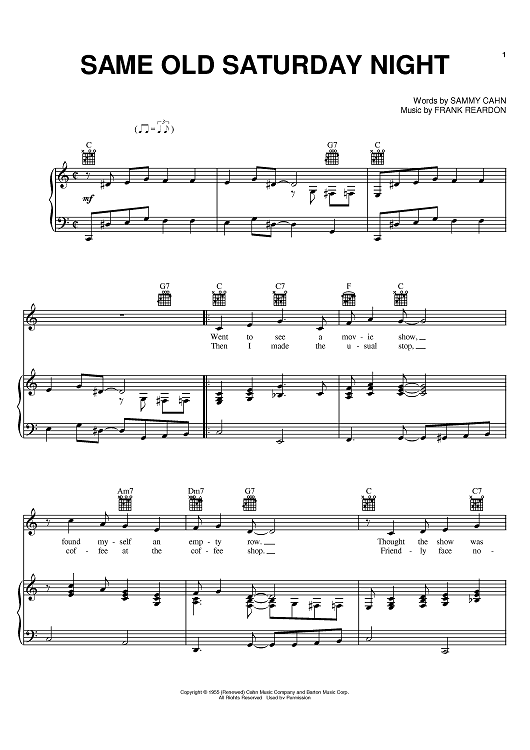 Digital Sheet Music for Same Old Saturday Night by Frank Sinatra, Sammy Cahn, Frank Reardon scored for Piano/Vocal/Chords; id:386071