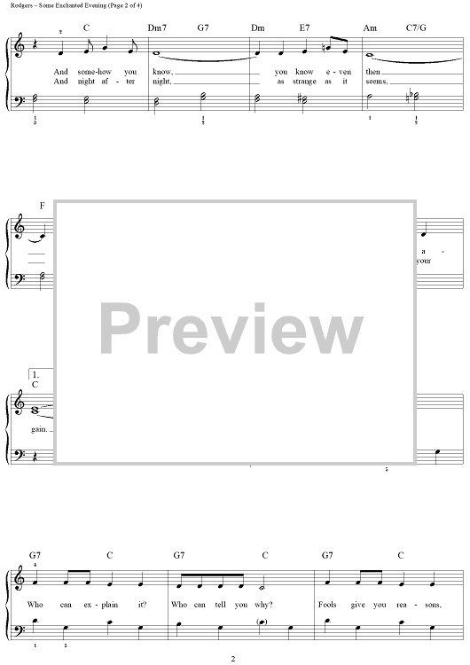 Digital Sheet Music for Some Enchanted Evening by Frank Sinatra, Richard Rodgers, Oscar Hammerstein II, Perry Como, Dean Martin, Ezio Pinza scored for Easy Piano; id:375168