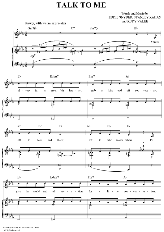 Digital Sheet Music for Talk to Me by Frank Sinatra, Rudy Vallee, Eddie Snyder, Stanley Kahan scored for Piano/Vocal/Chords; id:111951